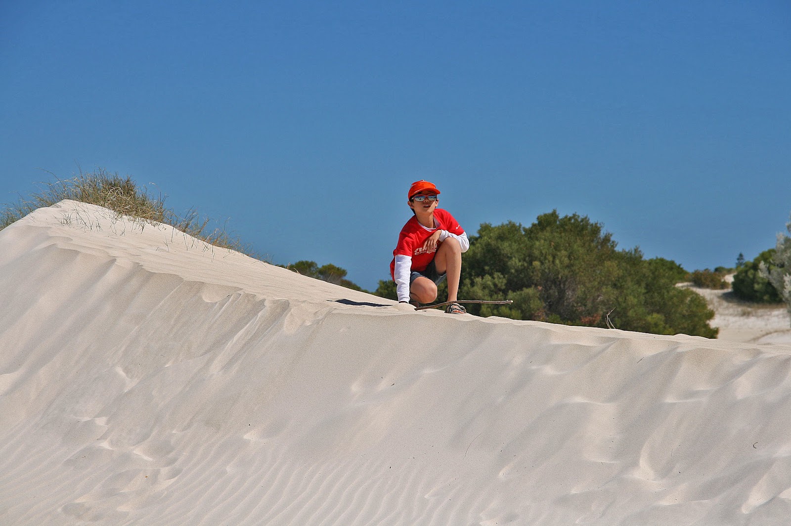 The boys and I have never been to any sand dunes before. So, we were looking forward to it. Also, it's great that the sand dune is nestled directly inland from Lancelin township. That means we didn't need to sit too long in the car, under the hot sun. YES !!